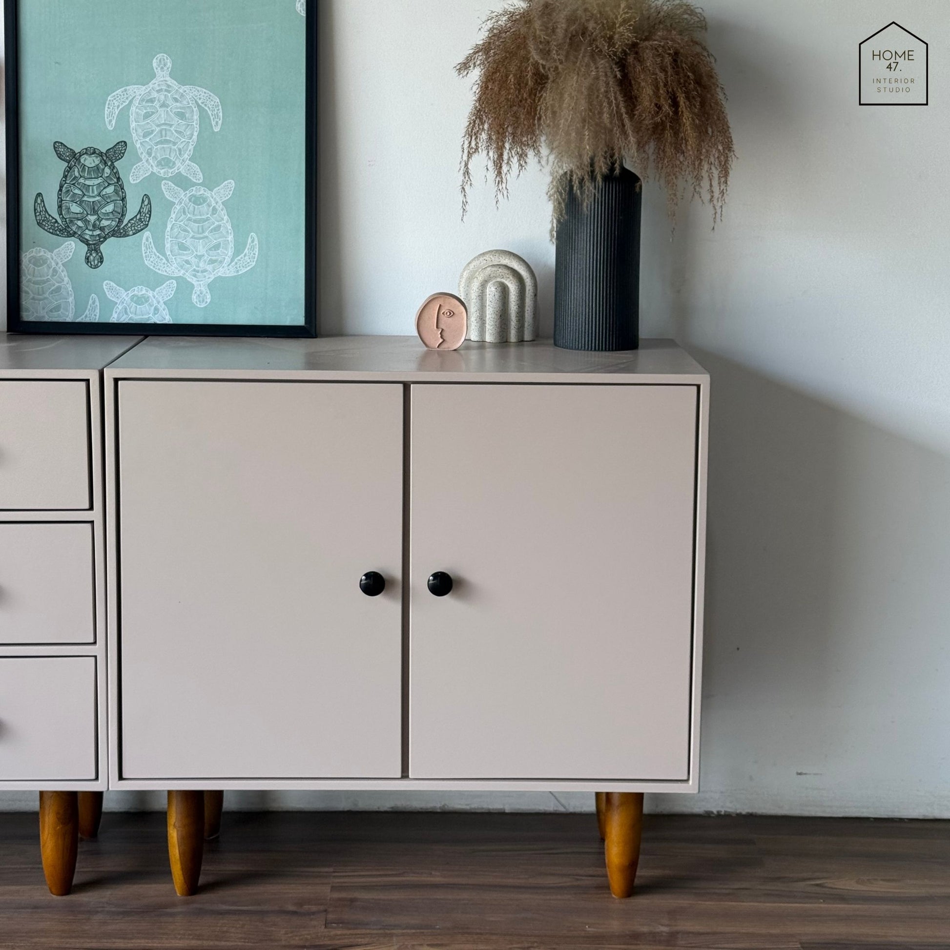 Elevate any space with this stunning storage piece that effortlessly blends mid-century charm with contemporary functionality. Clean lines, sleek handles, and elegant tapered legs create a timeless look that works anywhere in your home or office.